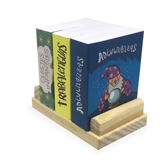 Con un precio especial en el que incluimos nuestro soporte de madera, te llevas un pack con 900 páginas de diversión y risas garantizadas.